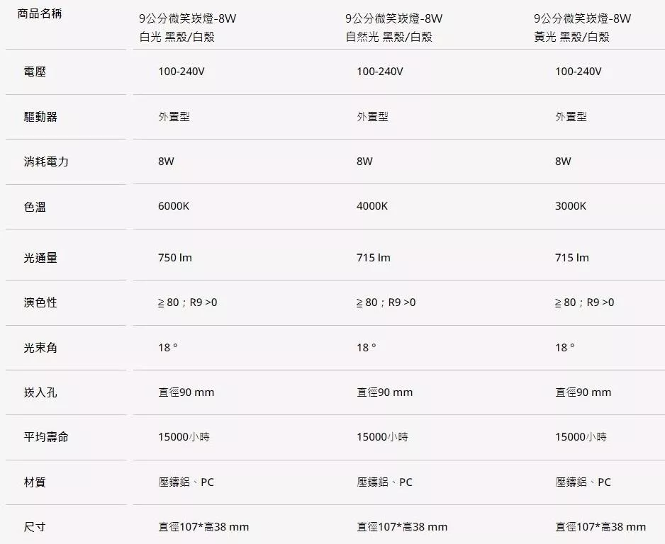 【文成】舞光燈具-8W 9公分微笑崁燈 黑/白 全電壓(100V~240V) 白光 黃光 自然光