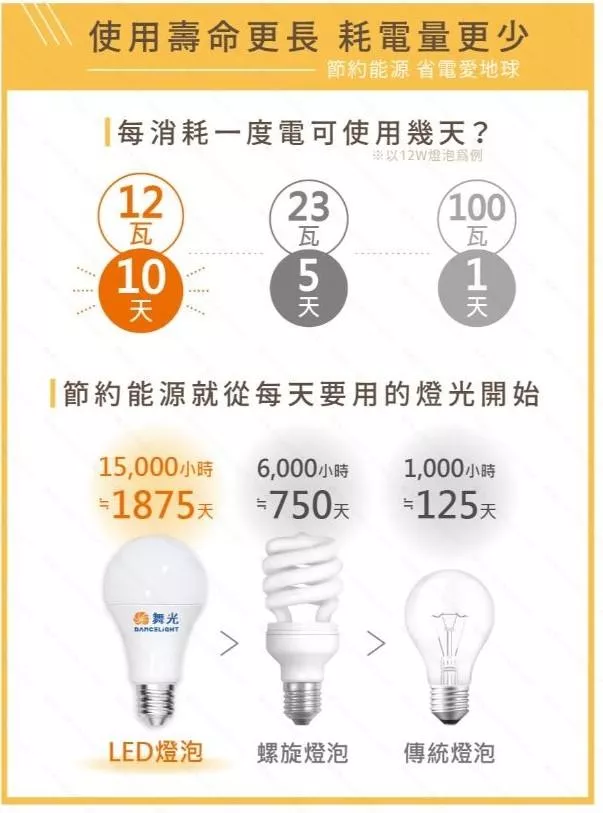 ✦ 使用壽命25000小時,一顆LED燈泡抵三顆傳統燈泡