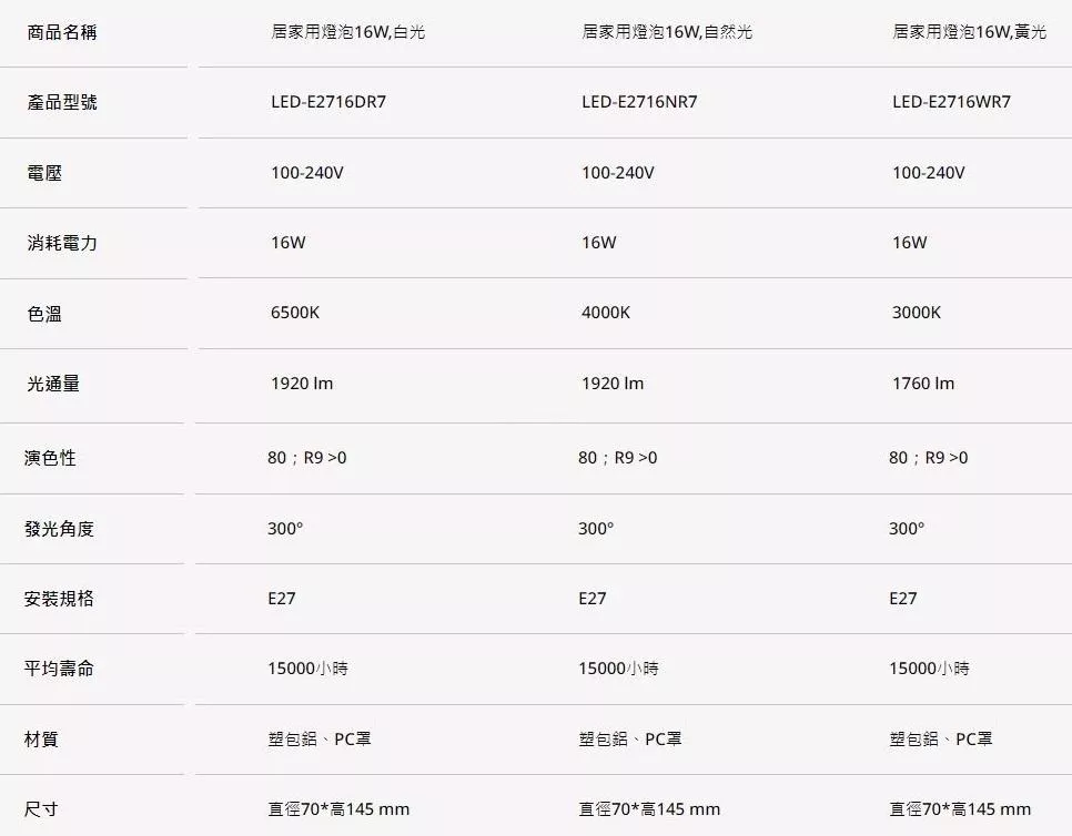 【文成】舞光燈具-居家用燈泡 E27 16W全電壓(100V~240V) 白光 黃光 自然光