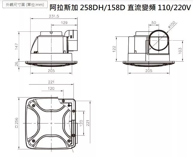 ALASKA 阿拉斯加258DH/158D直流變頻110/220V 無聲換氣扇 靜音 通風扇 排風機