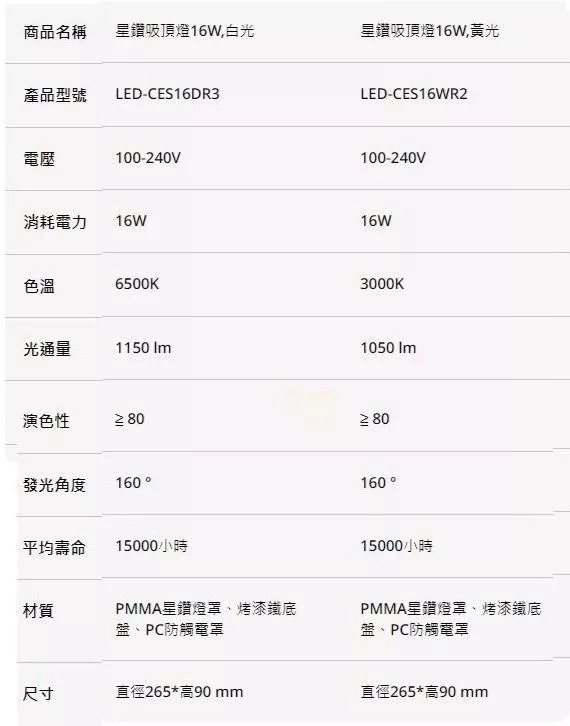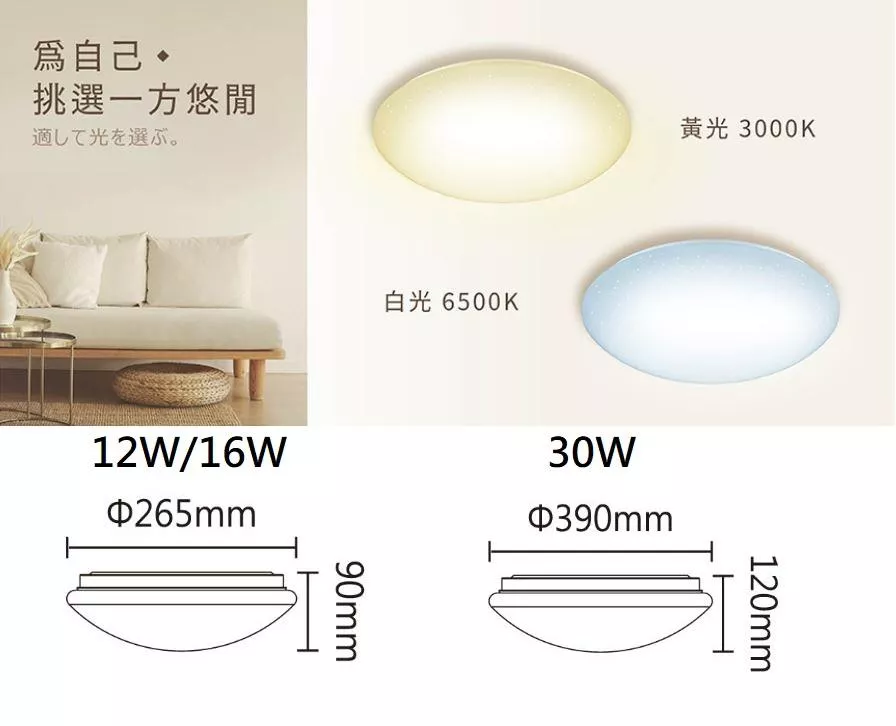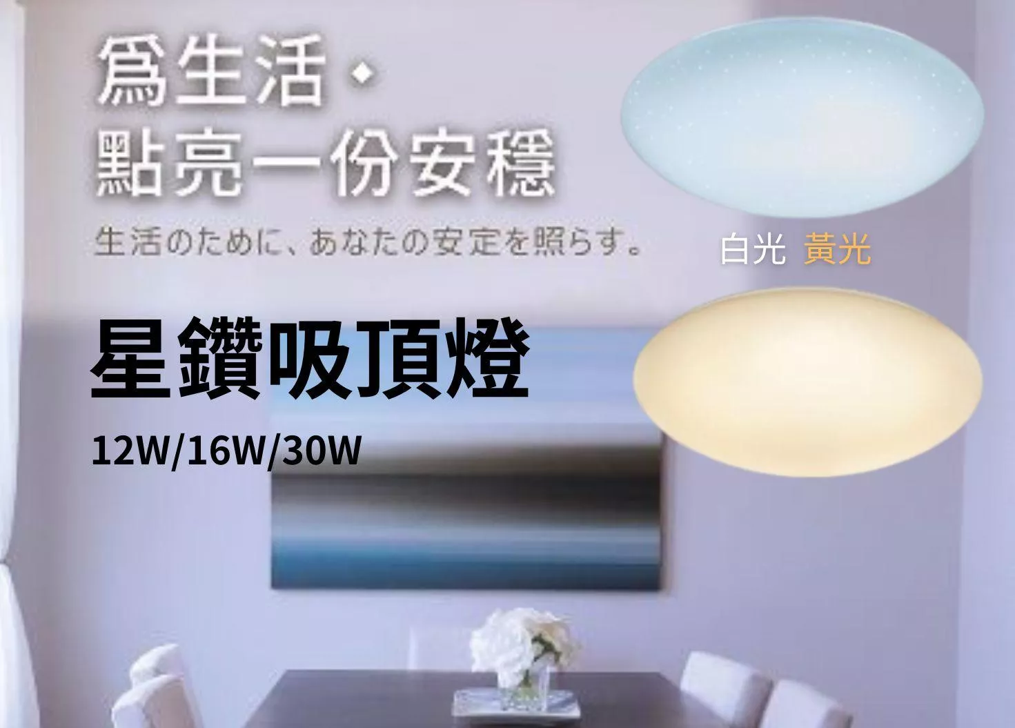 【文成】舞光燈具-星鑽吸頂燈 16W 全電壓(100V~240V) 白光 黃光