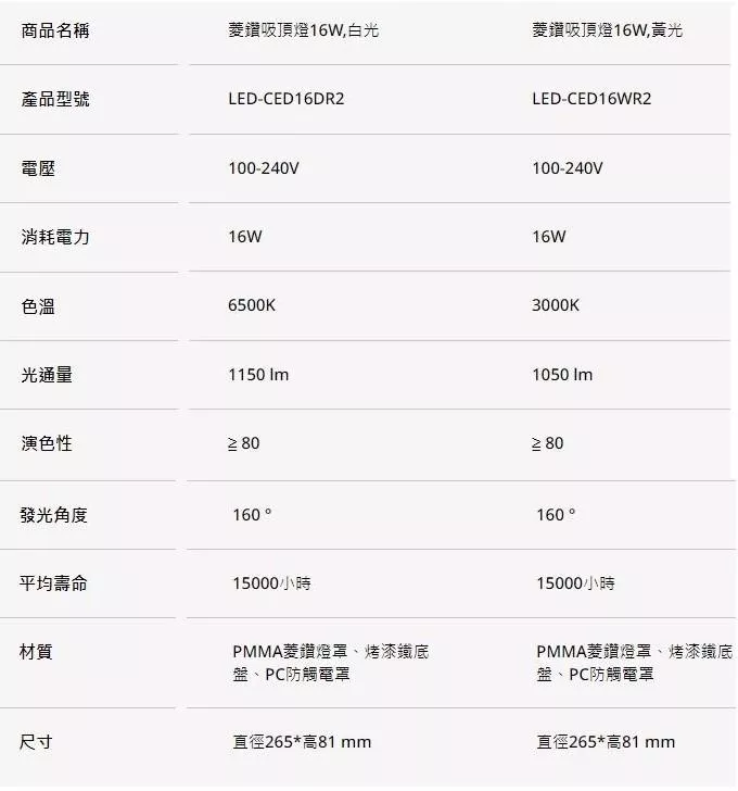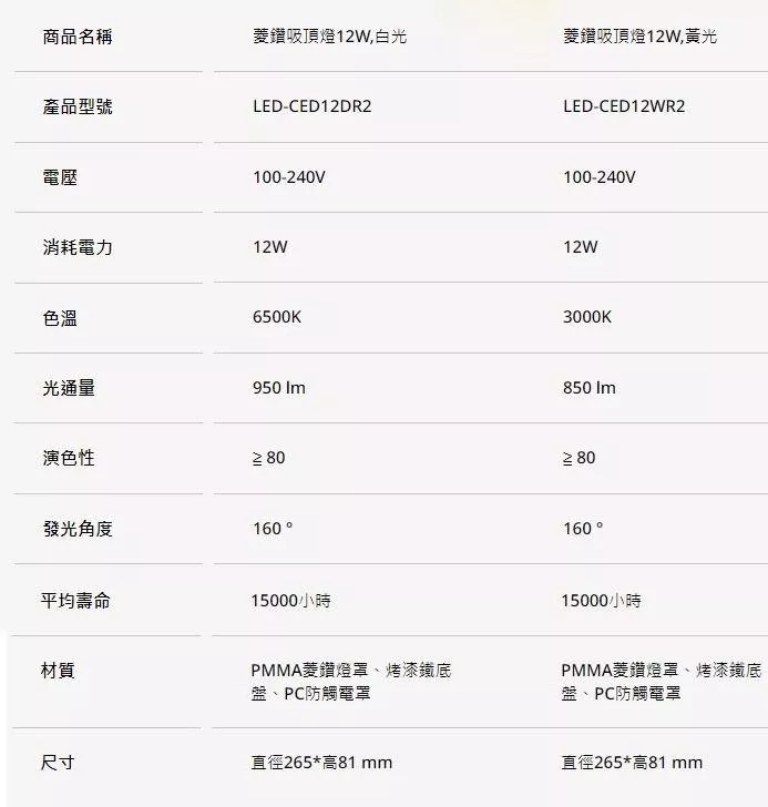 【文成】舞光燈具-菱鑽吸頂燈12W 全電壓(100V~240V) 白光 黃光