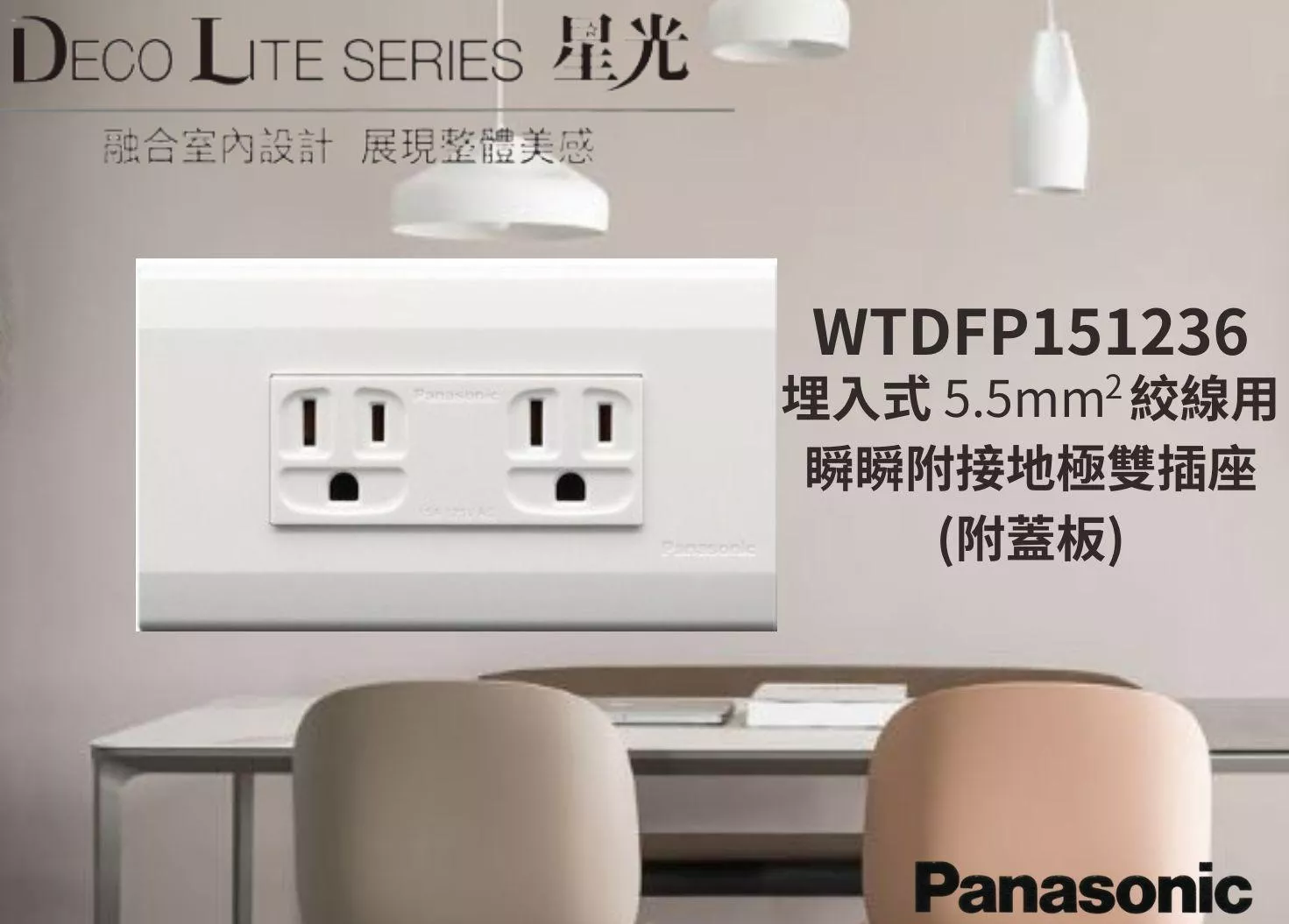 【文成】國際牌星光系列 WTDFP151236 埋入式 5.5mm 絞線用 瞬瞬附接地極雙插座 (附蓋板)