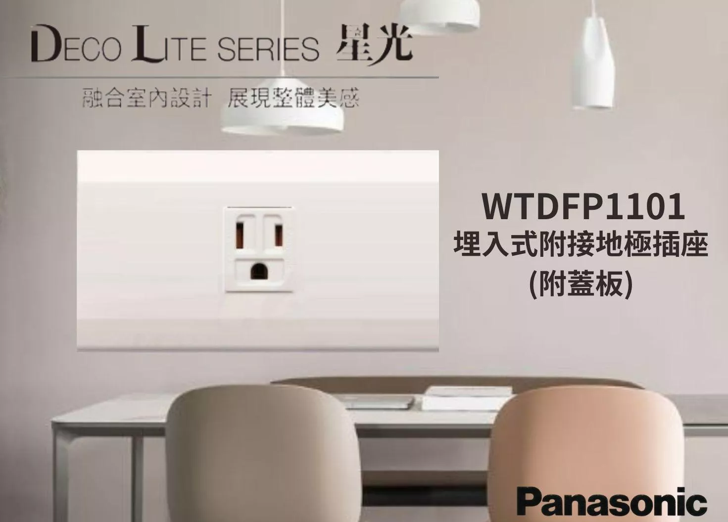 DECO LITE配線器具,充分表現出「無限簡潔洗鍊、呈現前所未見之美」之設計理念,與摩登感室內裝潢融合,實現簡潔洗鍊之現代美學,結合高貴、優雅與智慧,DECO LITE配線器具,將以豐富而多樣化的特質,引導您進入更舒適的生活環境。