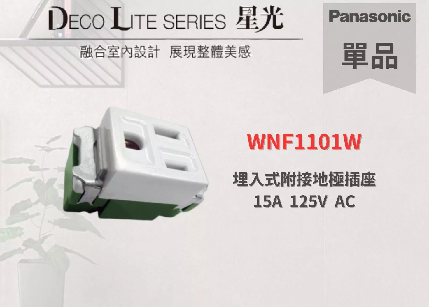 DECO LITE配線器具,充分表現出「無限簡潔洗鍊、呈現前所未見之美」之設計理念,與摩登感室內裝潢融合,實現簡潔洗鍊之現代美學,結合高貴、優雅與智慧,DECO LITE配線器具,將以豐富而多樣化的特質,引導您進入更舒適的生活環境。