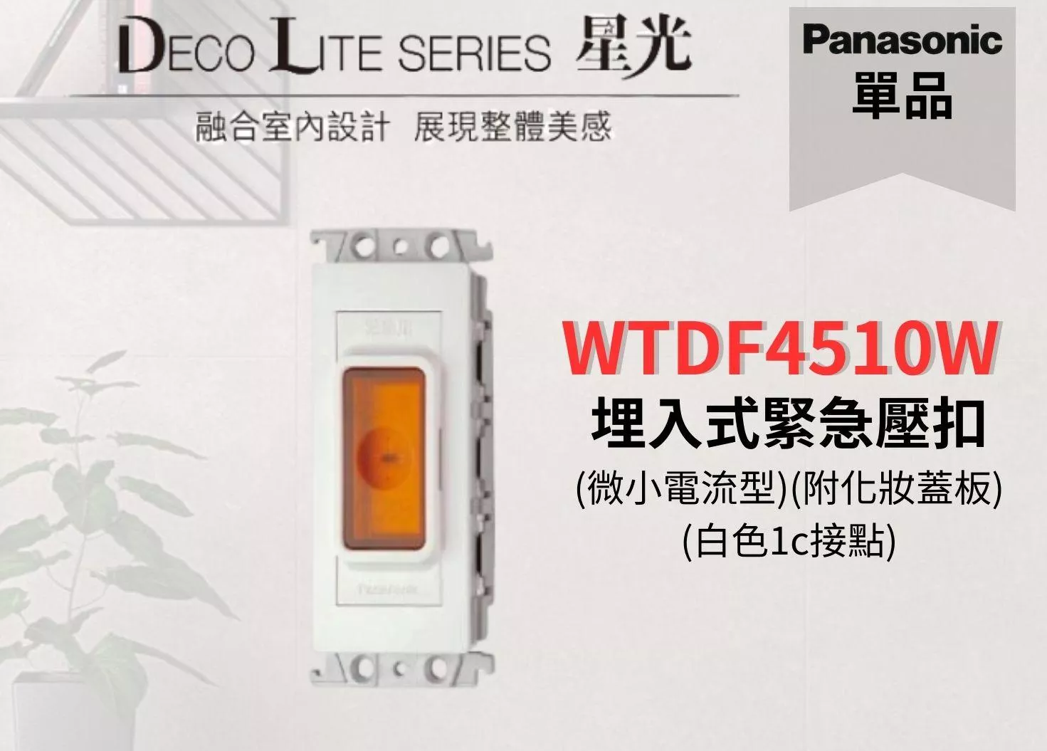 【文成】國際牌星光系列蓋板 WTDF4510W 埋入式緊急壓扣 (微小電流型)(附化妝蓋板) (白色1c接點)