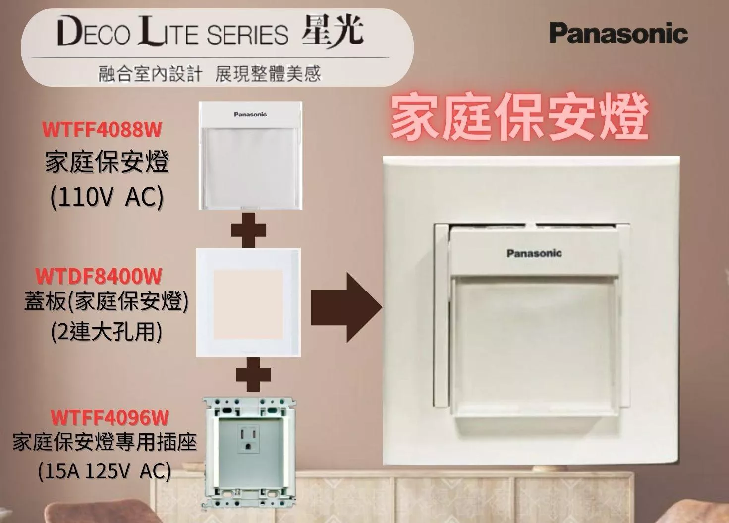 DECO LITE配線器具,充分表現出「無限簡潔洗鍊、呈現前所未見之美」之設計理念,與摩登感室內裝潢融合,實現簡潔洗鍊之現代美學,結合高貴、優雅與智慧,DECO LITE配線器具,將以豐富而多樣化的特質,引導您進入更舒適的生活環境。