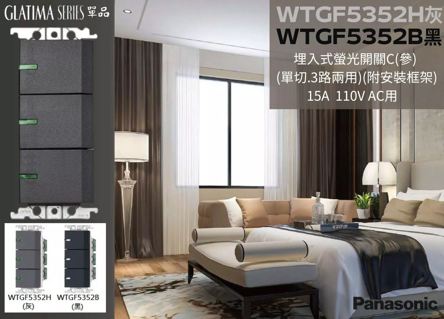 【文成】國際牌GLATIMA系列單品 埋入式螢光開關C WTGF5352H灰/WTGF5352B黑 三開附安裝框架 單切+3路兩用