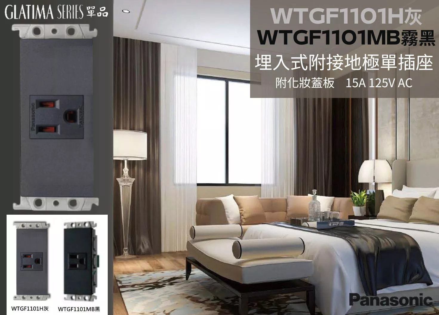 【文成】國際牌GLATIMA系列單品 埋入式附接地極單插座 WTGF1101H灰/WTGF1101MB霧黑 附化妝蓋板 15A 125V AC