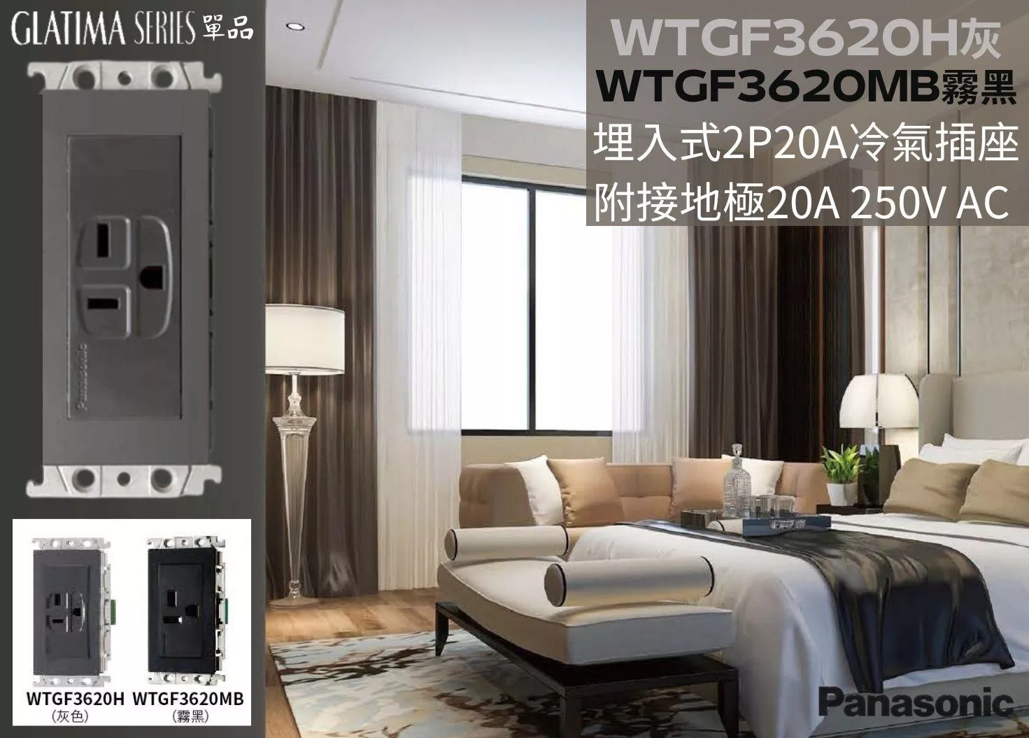 【文成】國際牌GLATIMA系列單品 埋入式2P20A冷氣插座WTGF3620H灰/WTGF3620MB霧黑 附接地極20A 250V