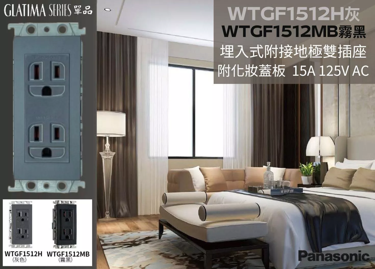 【文成】國際牌GLATIMA系列單品 埋入式附接地極雙插座 WTGF1512灰/WTGF1512MB霧黑 附化妝蓋板 15A 125V AC