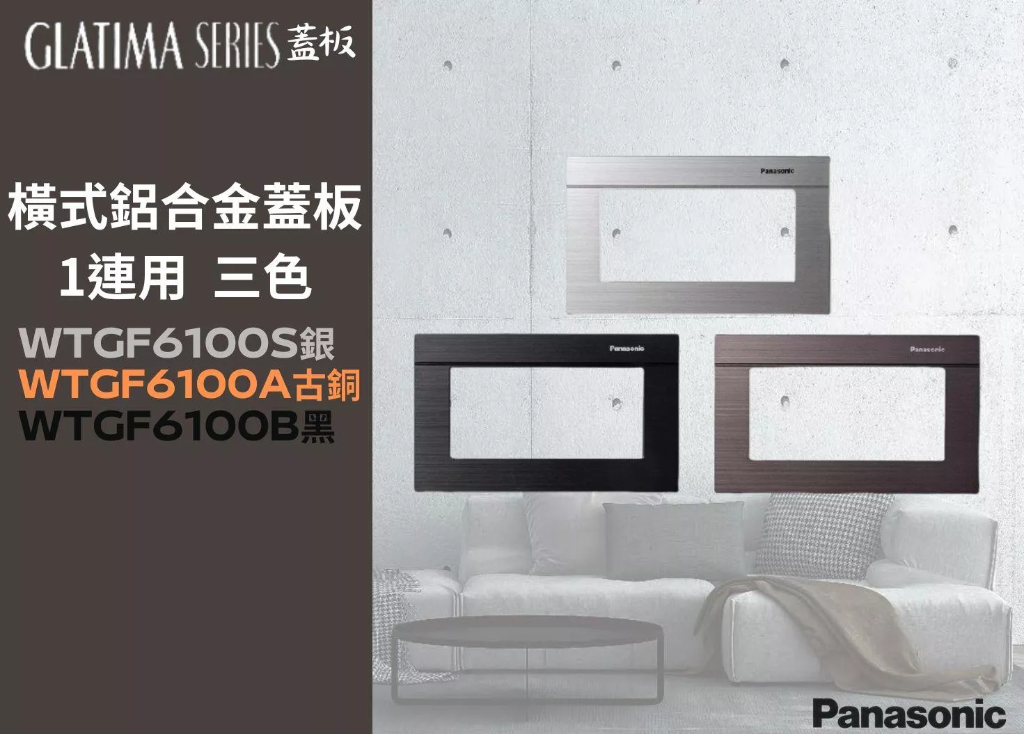 【文成】國際牌GLATIMA系列蓋板 橫式鋁合金蓋板一連用WTGF6100S銀/WTGF6100A古銅/WTGF6100B黑