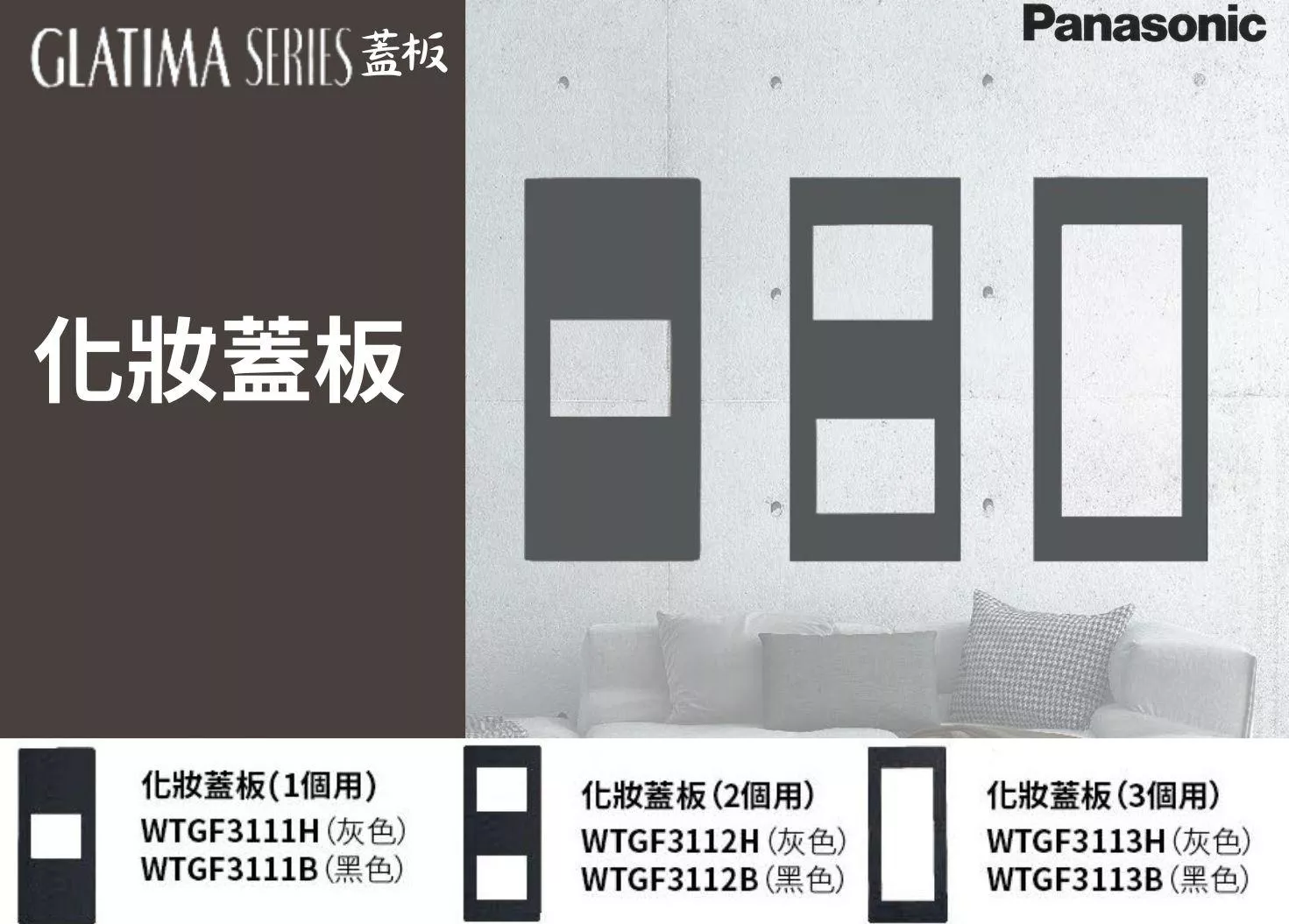 國際牌GLATIMA系列化妝蓋板1個/2個/3個用(灰/黑)