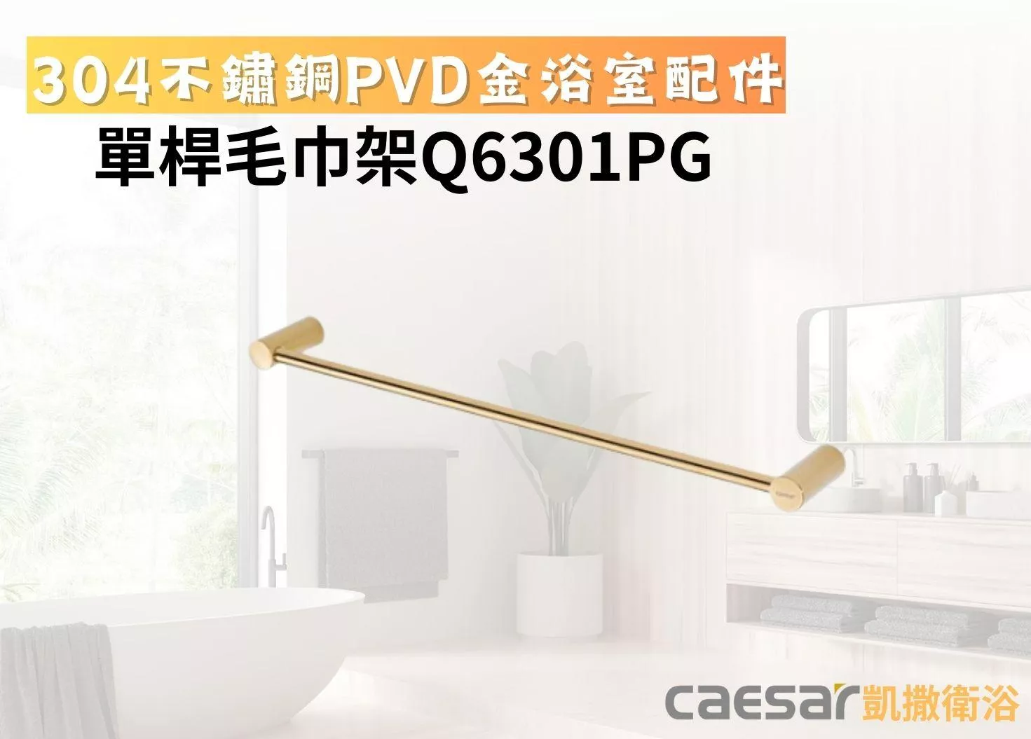凱撒衛浴-單桿毛巾架Q6301PG長度可裁切(不鏽鋼PVD金浴室配件)