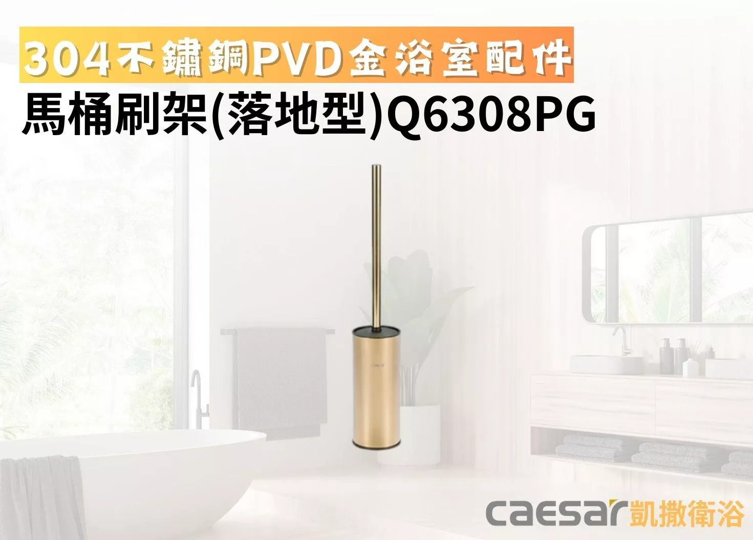 凱撒衛浴-Q6308PG落地型馬桶刷架(304不鏽鋼PVD金浴室配件)
