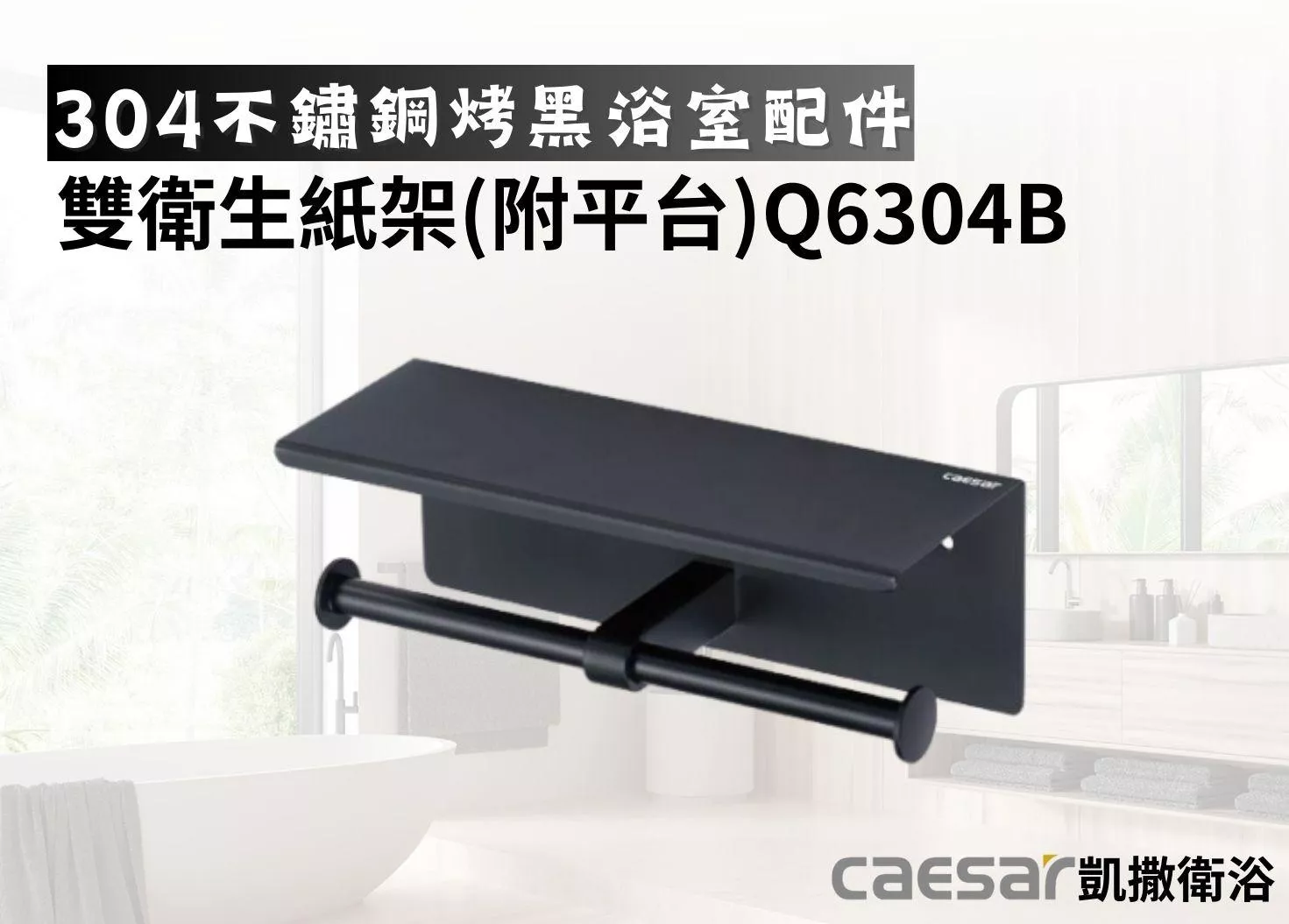 凱撒衛浴-雙衛生紙架(附平台)Q6304B(304不鏽鋼烤黑浴室配件)