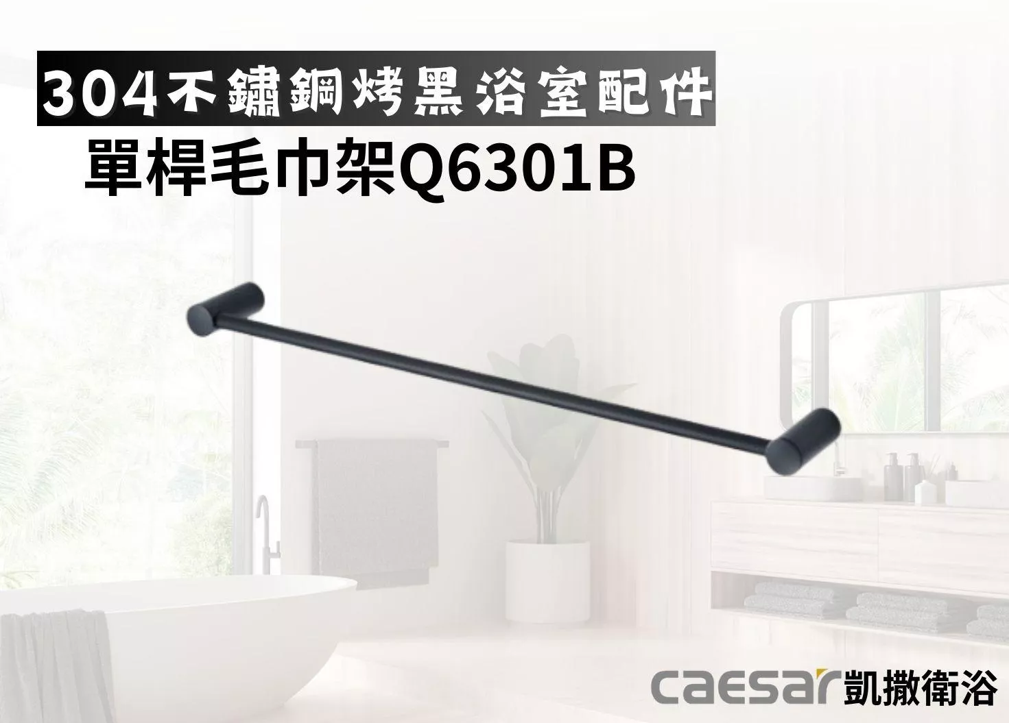 凱撒衛浴-單桿毛巾架Q6301B長度可裁切(304不鏽鋼烤黑浴室配件)