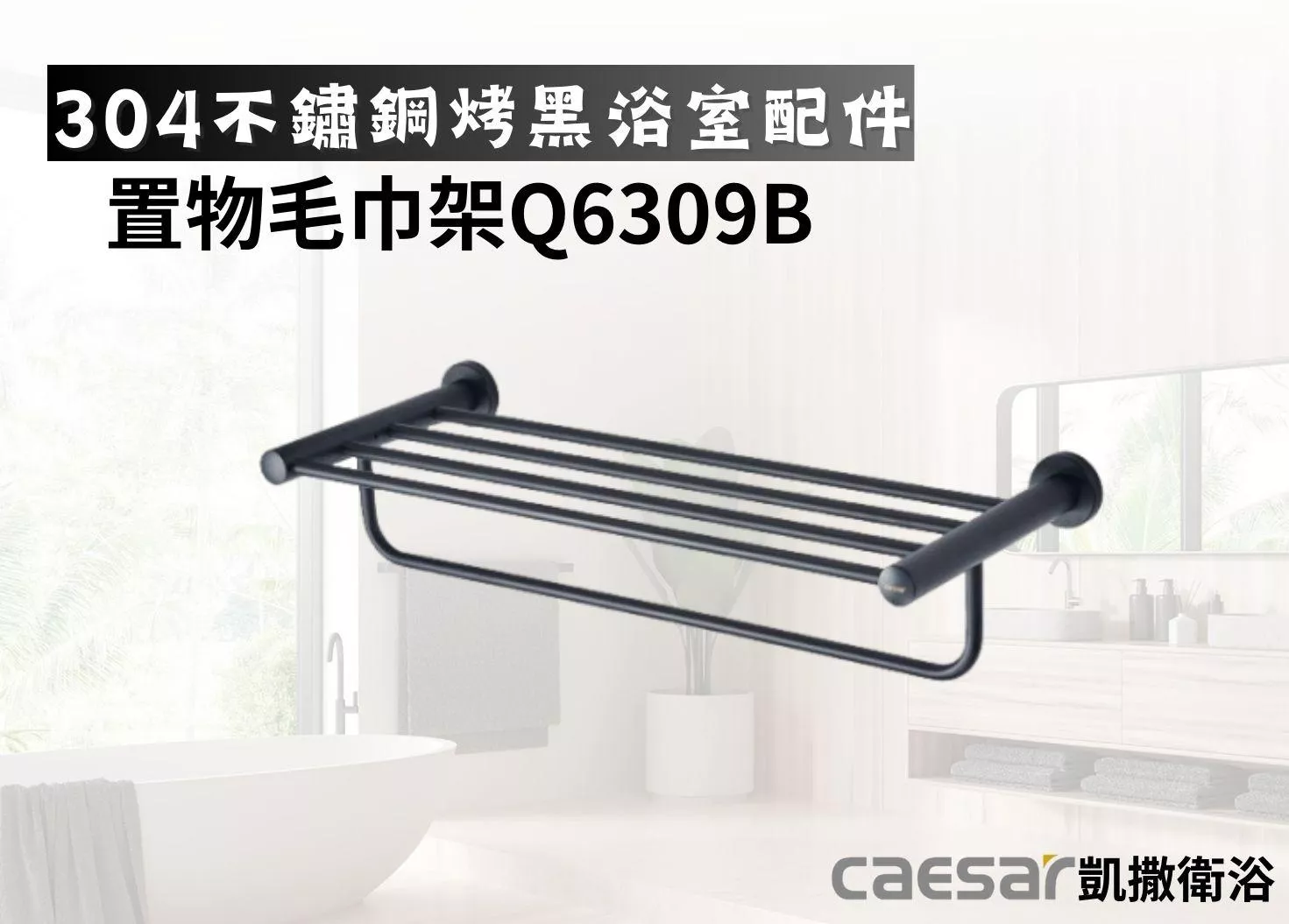 凱撒衛浴-置物毛巾架Q6309B(304不鏽鋼烤黑浴室配件)