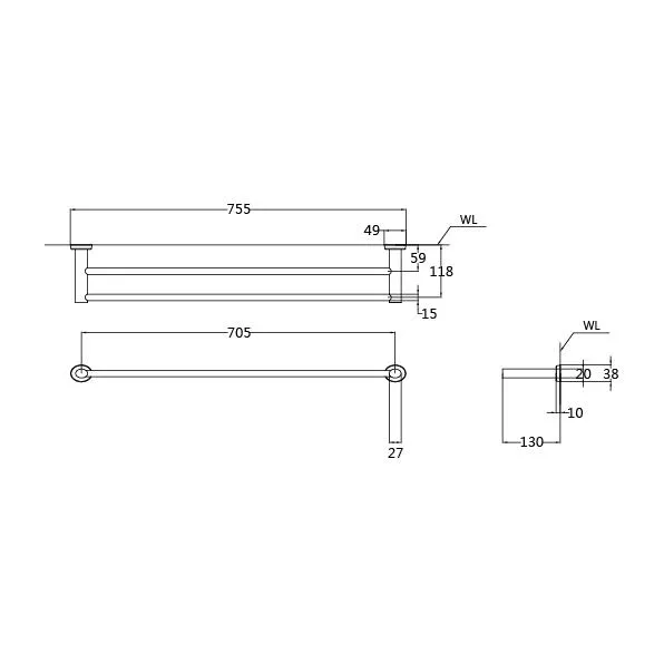 凱撒衛浴-雙桿毛巾架Q8906(鋅合金浴室配件)