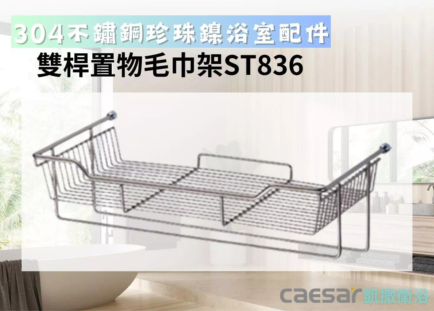 凱撒衛浴-雙桿置物毛巾架ST836(不鏽鋼珍珠鎳浴室配件)