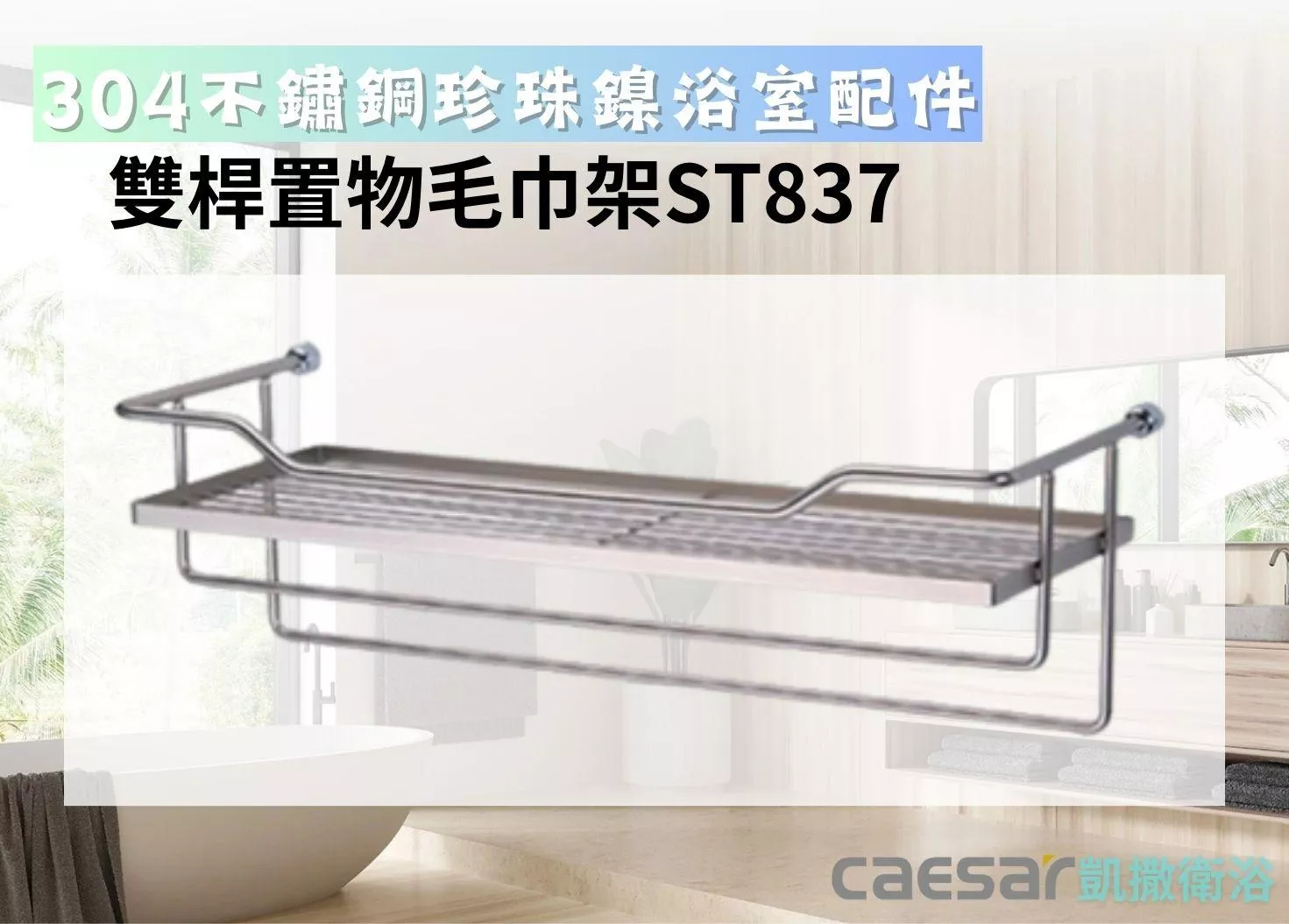 凱撒衛浴-雙桿置物毛巾架ST837(不鏽鋼珍珠鎳浴室配件)
