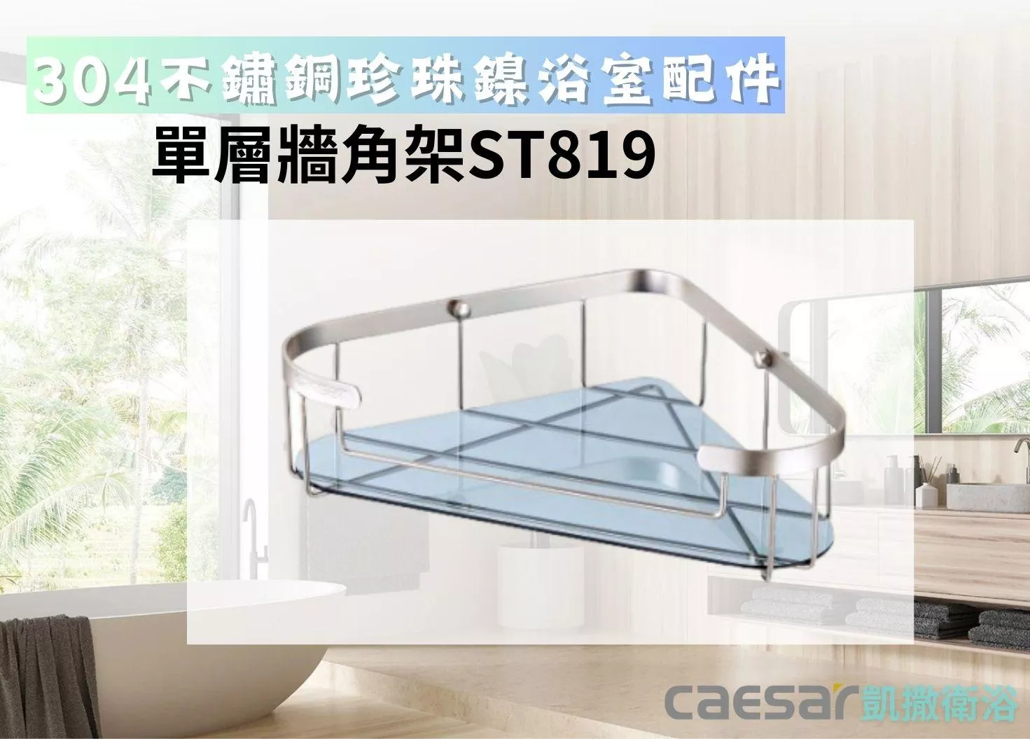 凱撒衛浴-單層牆角架ST819附一片壓克力層板(不鏽鋼珍珠鎳浴室配件)