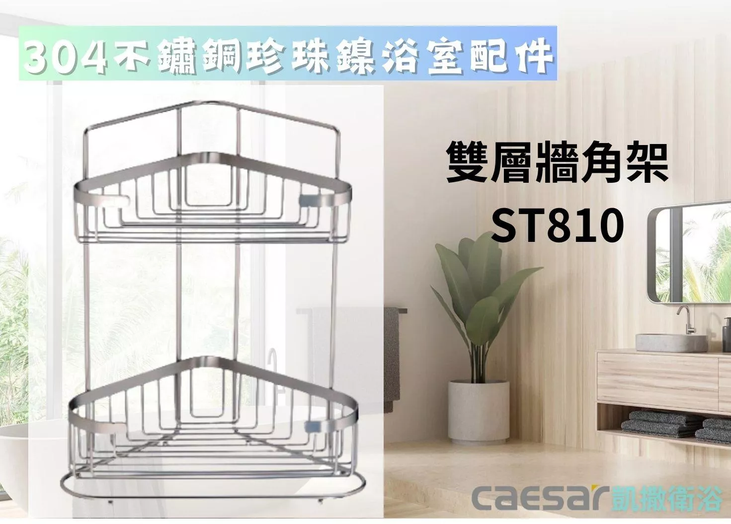 凱撒衛浴-雙層牆角架ST810(不鏽鋼珍珠鎳浴室配件)