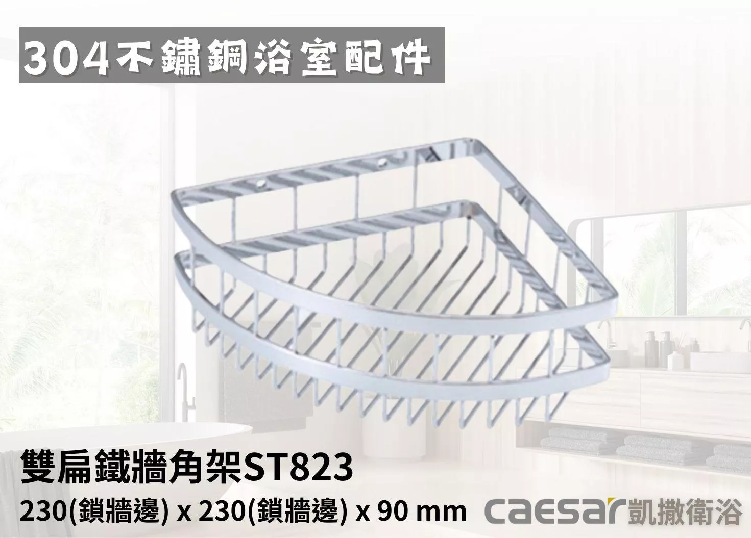 凱撒衛浴-雙扁鐵牆角架ST823(304不鏽鋼浴室配件)