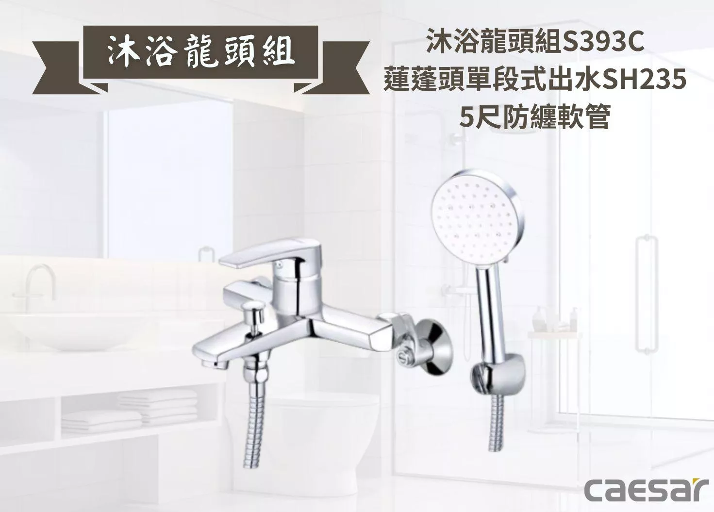 凱撒衛浴-沐浴龍頭組S393C+蓮蓬頭3段式出水SH235+5尺防纏軟管