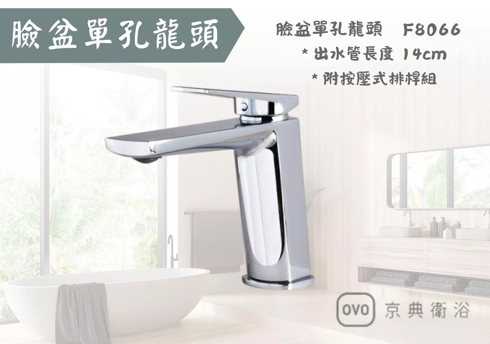 F8066 臉盆單孔龍頭表層亮面銀色系,外觀俐落,開關把手微向上傾斜,使用上更順手。