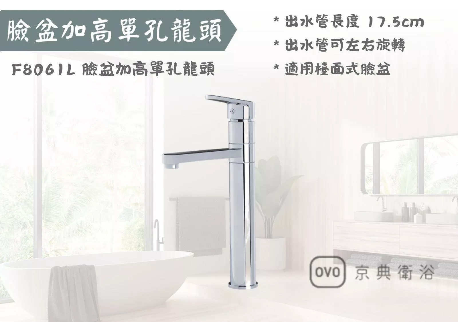 F8061L 臉盆加高單孔龍頭