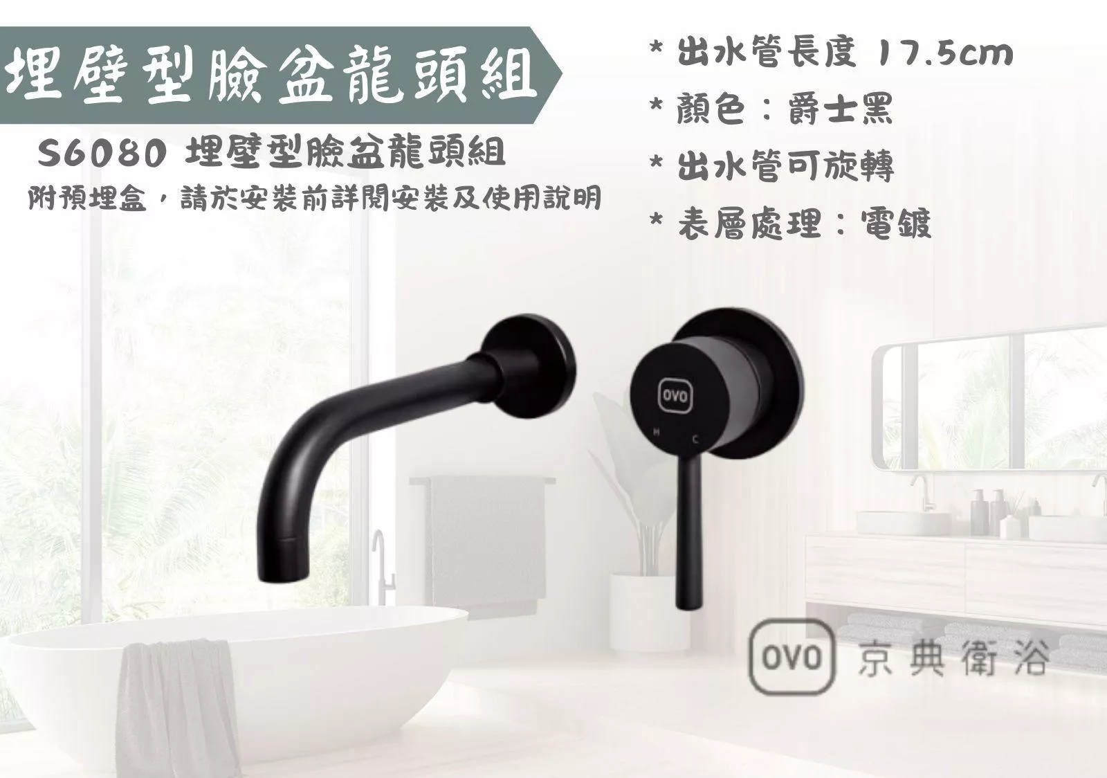 【文成】OVO京典衛浴-S6080 埋壁型臉盆龍頭組 爵士黑系列 水龍頭