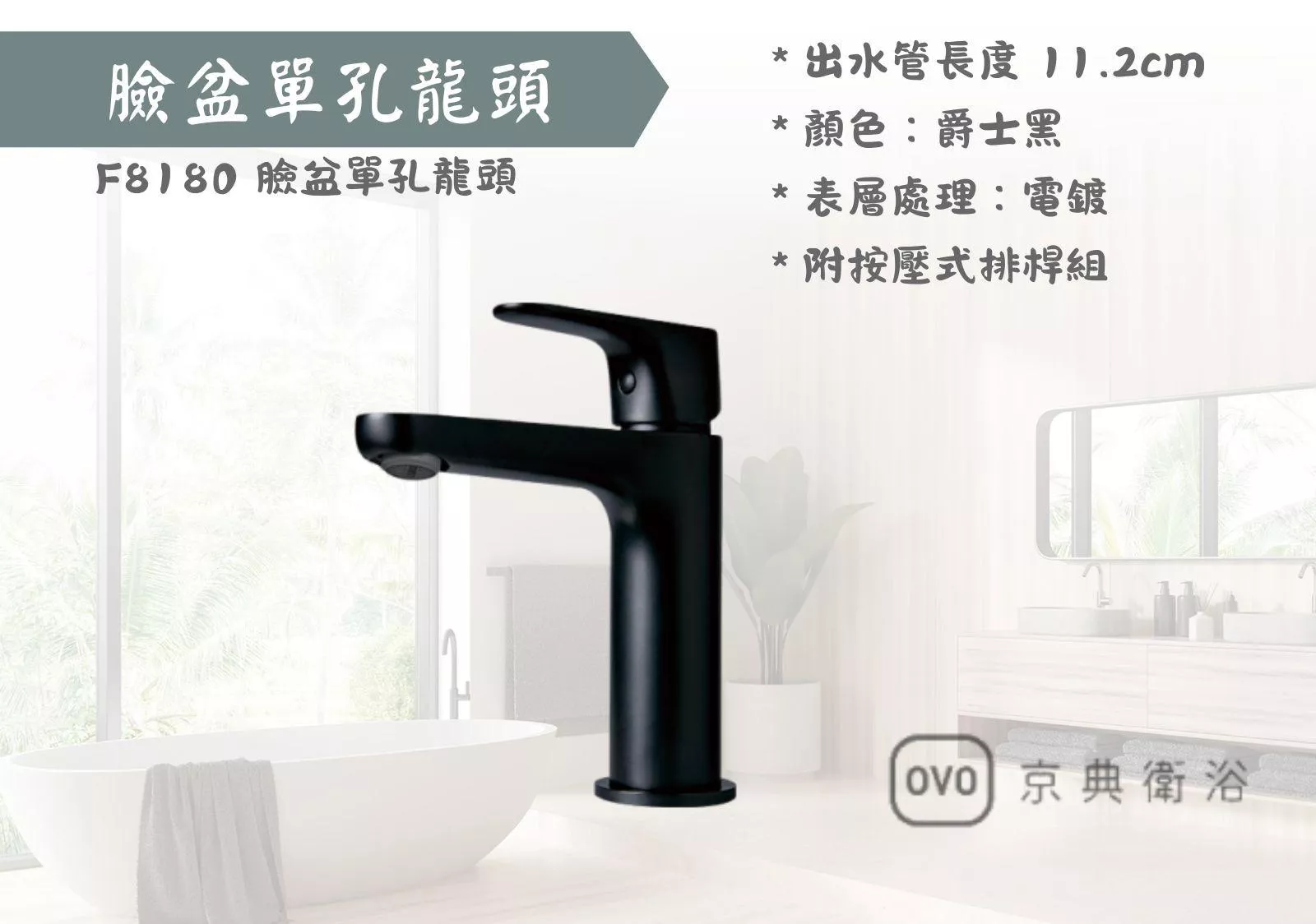 【文成】OVO京典衛浴-F8180 臉盆單孔龍頭 爵士黑系列 面盆龍頭 水龍頭