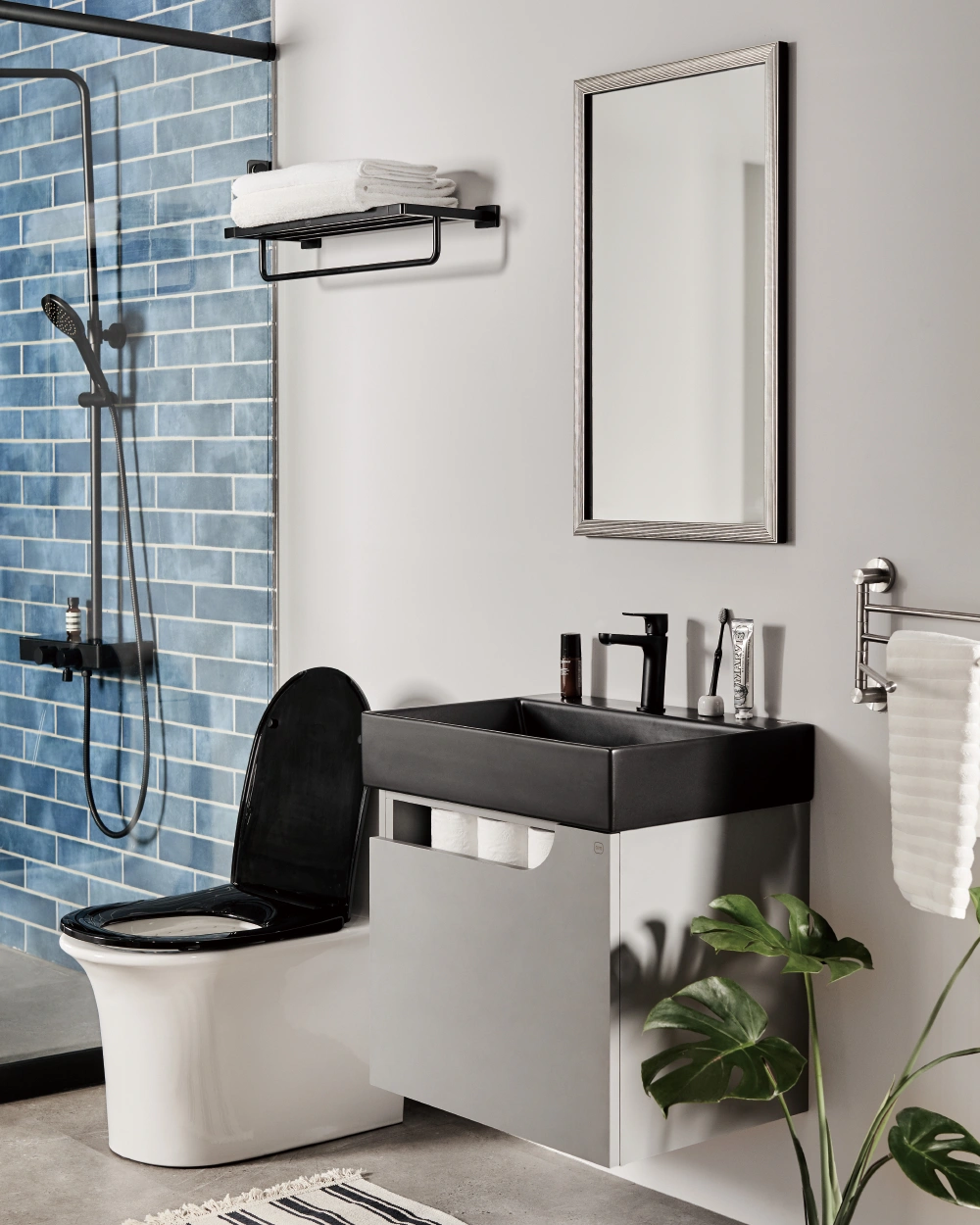 ● 爵士黑現代簡約風格,輕鬆打造低調有型的衛浴空間