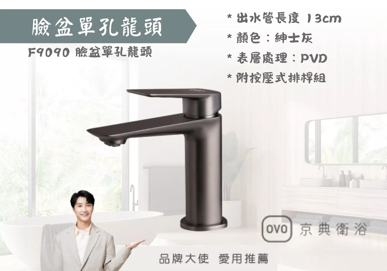 【文成】OVO京典衛浴-F9090 臉盆單孔龍頭 紳士灰系列 面盆龍頭 水龍頭