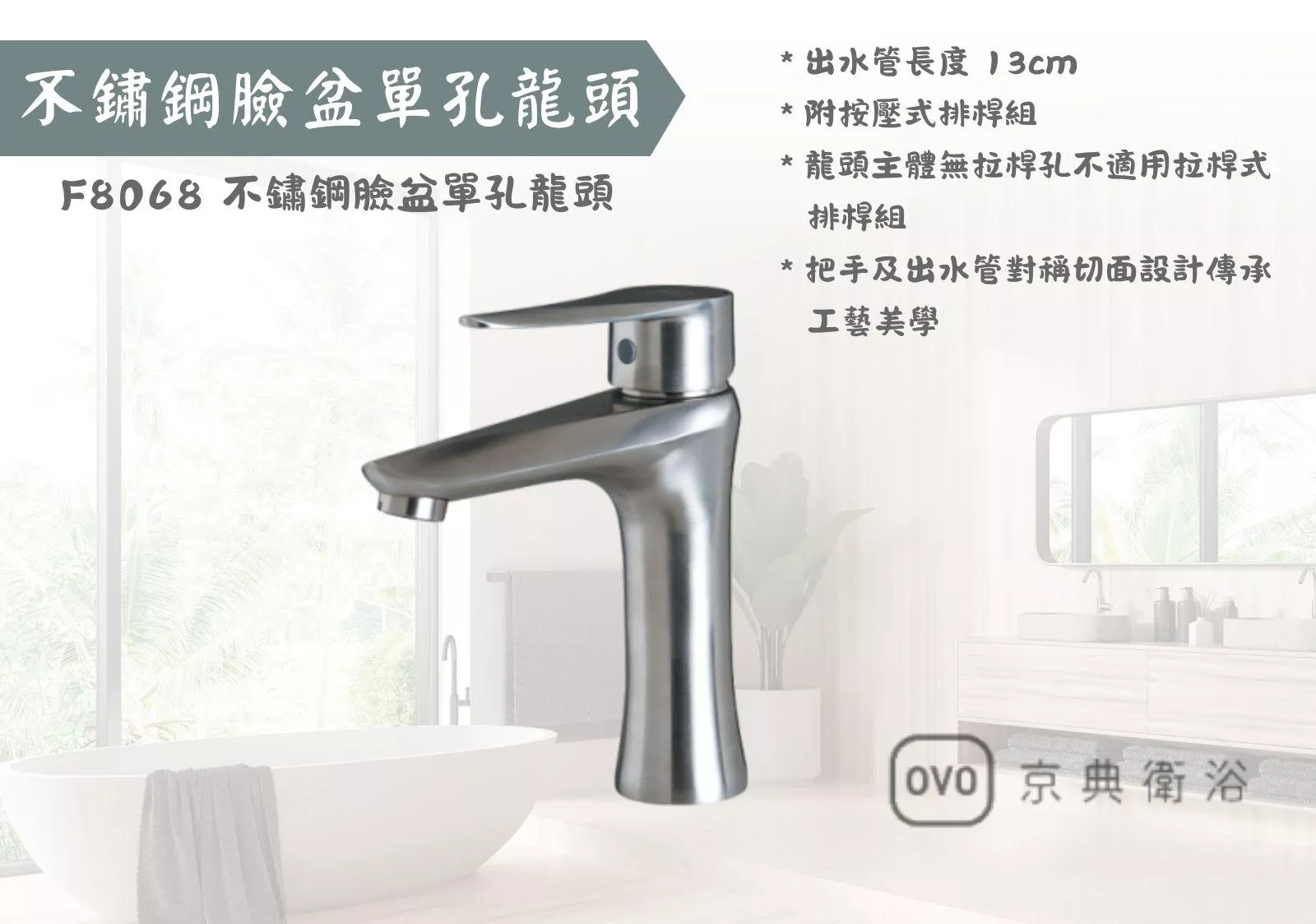 【文成】OVO京典衛浴-F8068 不鏽鋼臉盆單孔龍頭 霧面不鏽鋼系列 面盆龍頭 水龍頭