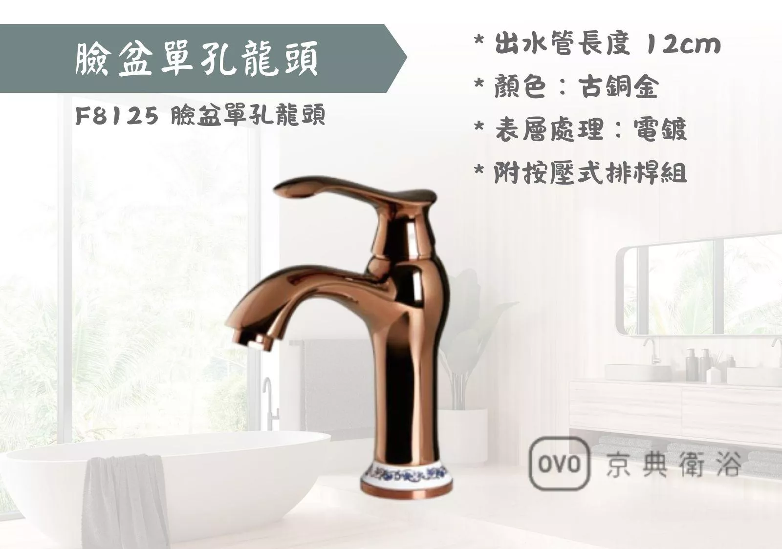 【文成】OVO京典衛浴-F8125 臉盆單孔龍頭 古銅金鋼系列 面盆龍頭 水龍頭